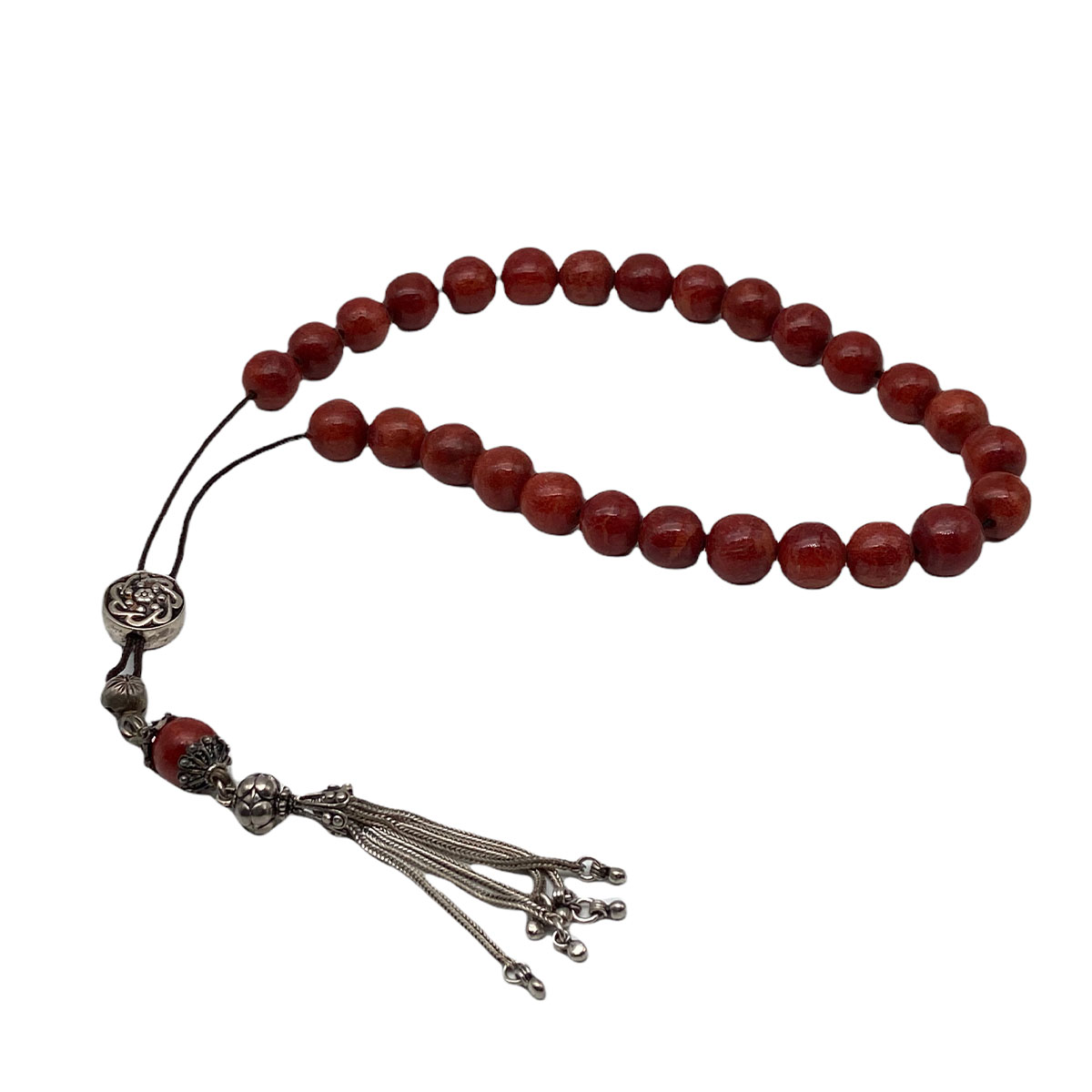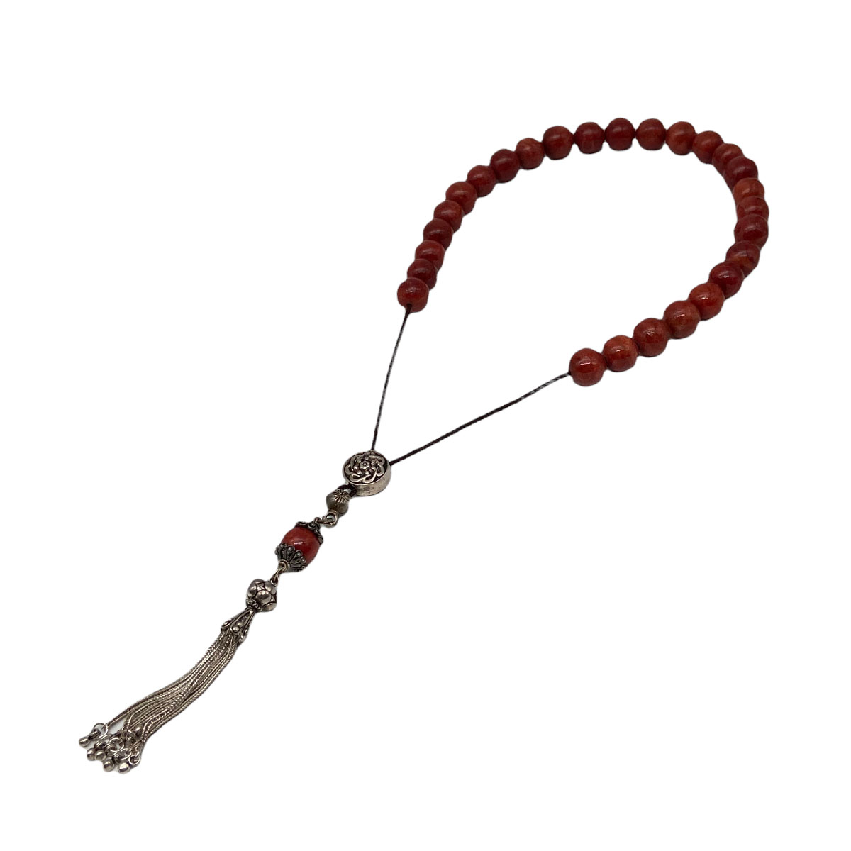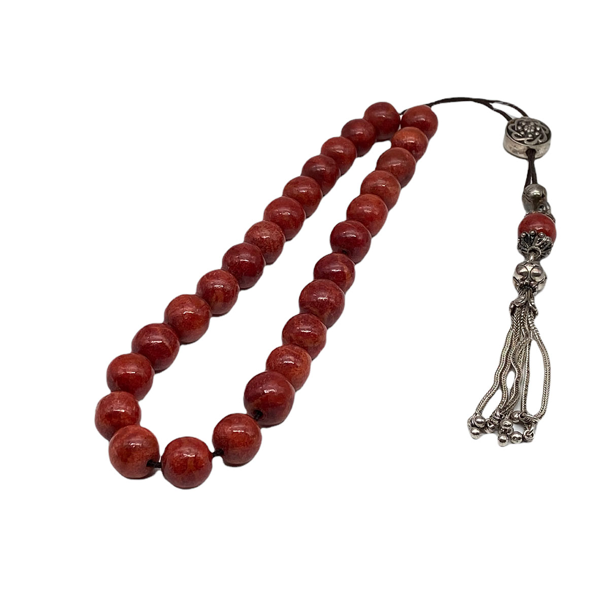Αυτό το κομπολόι είναι εξ ολοκλήρου χειροποίητο. Η σπανιότητα των υλικών εγγυάται την ποιότητα και την αισθητική του. Η γνώση της παράδοσης και το μεράκι του κατασκευαστή αρκεί για να παρασύρει αυτόν που το κρατά σε μαγικά ταξίδια στα σοκάκια της ανατολής.