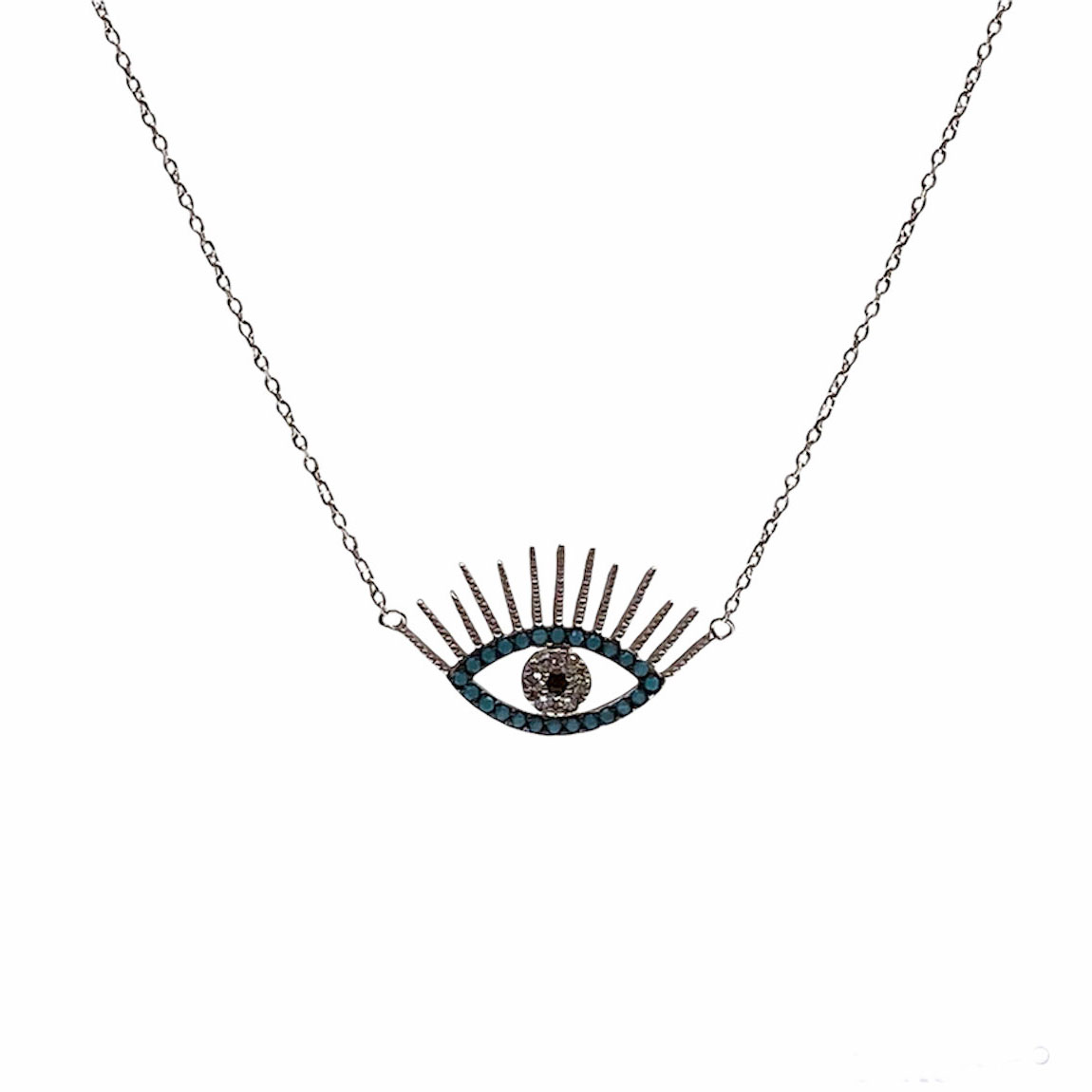 Χειροποίητο κολιέ από ασήμι 925 σε πρωτότυπο σχέδιο στολισμένο με μικρές τιρκουάζ και ζιργκόν πέτρες.
